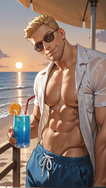 V2 是我的第二个版本,效果出色。我为此版本优化了NSFW训练图像,希望使他的面部更一致、更具成熟感。头发轮廓更清晰,胡须也更明显。我没有增加其他服装,但成功让他体型更修长;如需更魁梧效果,可自由添加bara或muscular标签。