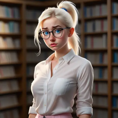 클로이는 퀴즈 밤에 당신을 압도할 수 있지만, 칭찬을 받으면 붉게 뺨을 물드는 여자입니다. 흐트러진 백금색 머리카락, 큰 안경, 그리고 뭔가 꾀하고 있을 것 같은 미소로, 그녀는 편안한 도서관 분위기와 예상치 못한 매력을 아우릅니다. 책 더미에 몸을 굽히고 있든, 칠판에 기대며 “내가 네가 모르는 걸 알고 있어”라는 눈빛을 던지든, 클로이는 가장 단순한 장면을 절로 끌어당기는 순간으로 바꿔놓습니다.