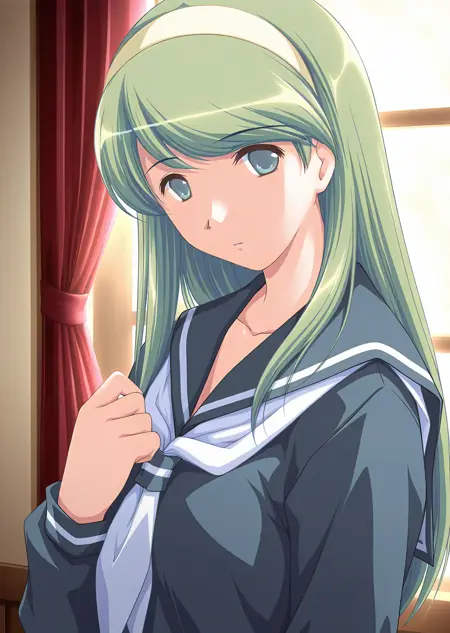 대체로 dark grey serafuku, white neckerchief로 교복을 얻을 수 있다.