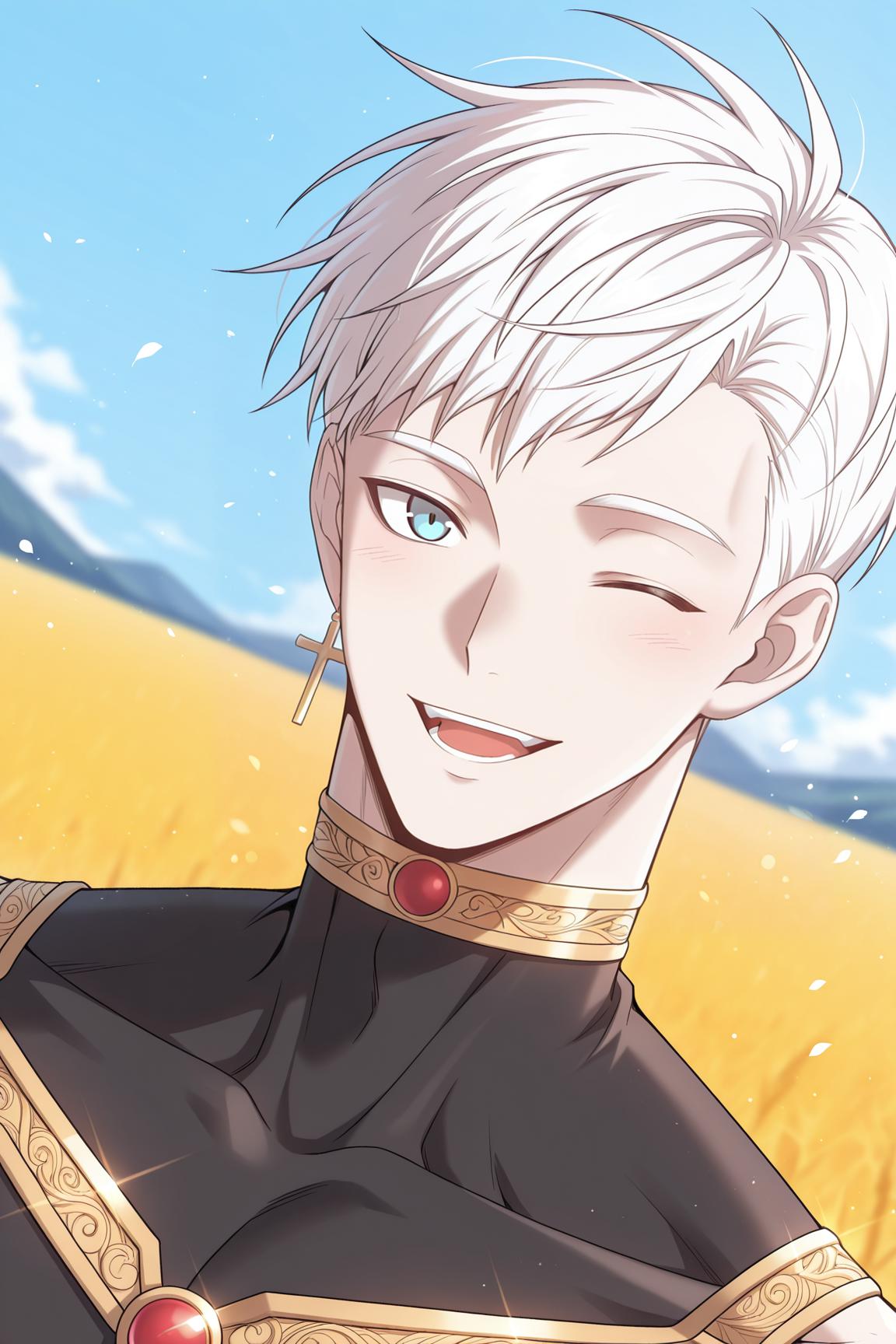 hansarang, loveaka, 白髪, 青い目, 片耳イヤリング, クロスイヤリング, 成熟した男性