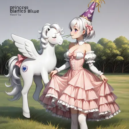 princess_tiffany, feral, no humans, 1girl, horse, pony, pegasus, bodyfur, (white fur), horse snout, animal nose, white pegasus wings, white hooves, (long hair, white sparkly hair), sparkly silver tinsel in hair, white sparkly mane, white sparkly tail, blush, full face blush, big sparkling blue eyes, silver bejeweled teardrop-shaped medallion cutie_mark