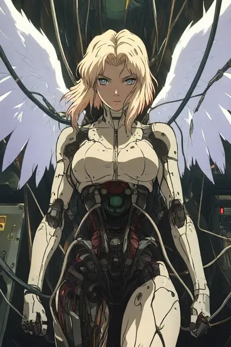 Ghost in the ShellスタイルのMidjourney画像を使用して作成されたLoRA。