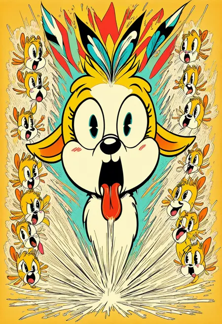 Welcome to a world where whimsy melts into madness, and the edges of imagination curl like overcooked film reels. Wacky Toon Melt Expressionism is a vivid, surreal LoRA designed to bring any scene, creature, or character into a rubber hose-inspired whirlwind of joy, distortion, and emotional exaggeration. With a look that draws on early 20th-century animation, German expressionist cinema, and over-the-top cartoon charm, this LoRA blends chaotic energy with soft surrealism to create unforgettable images. Think inky outlines, warped perspective, exaggerated emotions, and playful abstraction that feels like your dreams took a wrong turn into a 1930s cartoon short.