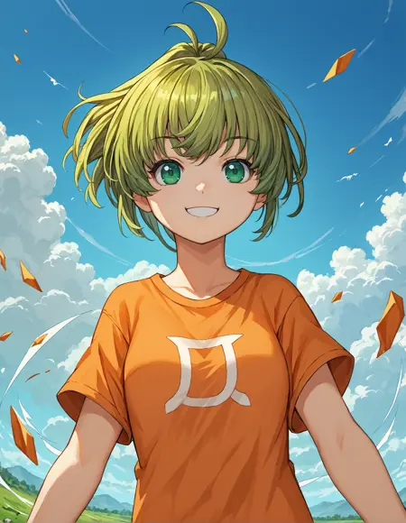 魔法服装: mgrcannameru, annmgc, 短马尾,透明薄纱,白色分离式领子,深绿色上衣,绿色胸饰,白色露肩连衣裙,腋下开叉,绿色胸带,白色手套,绿色腕饰,深绿色紧身裤