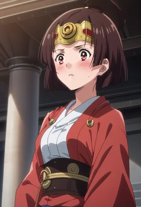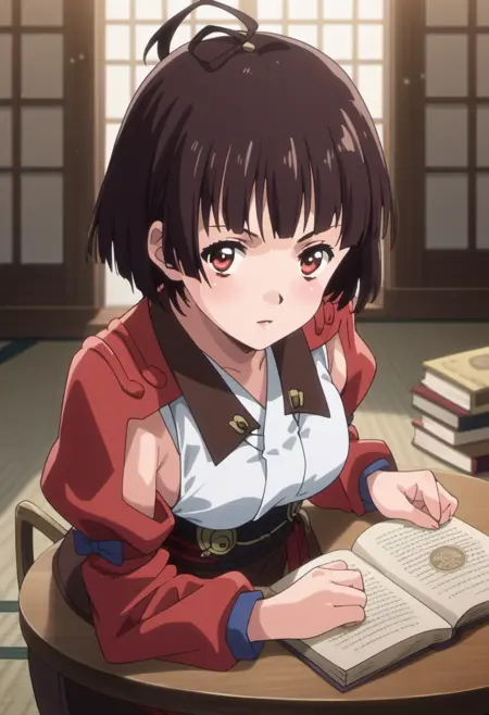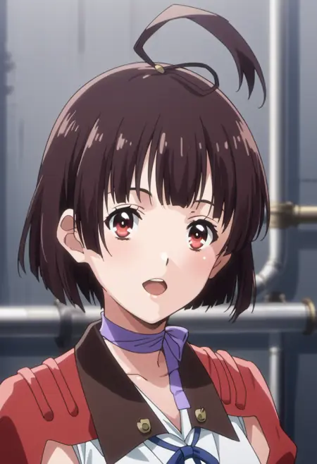 트리거 단어: mumei (kabaneri), 단발, 갈색 머리, 붉은 눈