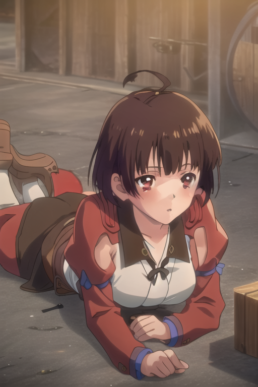 트리거 단어: mumei (kabaneri), 단발, 갈색 머리, 붉은 눈