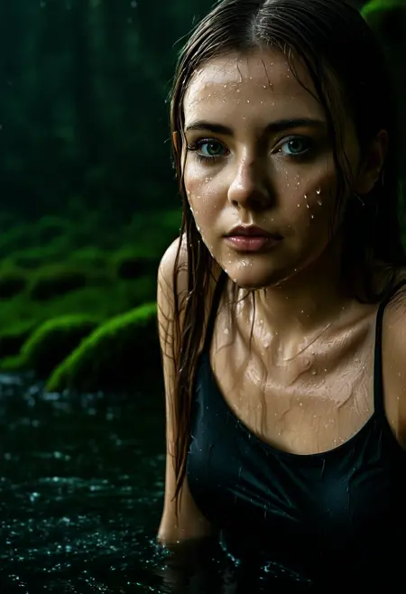 A high-detail character LoRA focused on wet skin aesthetics, capturing realistic water droplets, soft lighting, and sensual close-ups. Perfect for rain scenes, showers, or moody cinematic portraits with wet hair and reflective highlights. Balanced for elegance and subtle erotic tension.