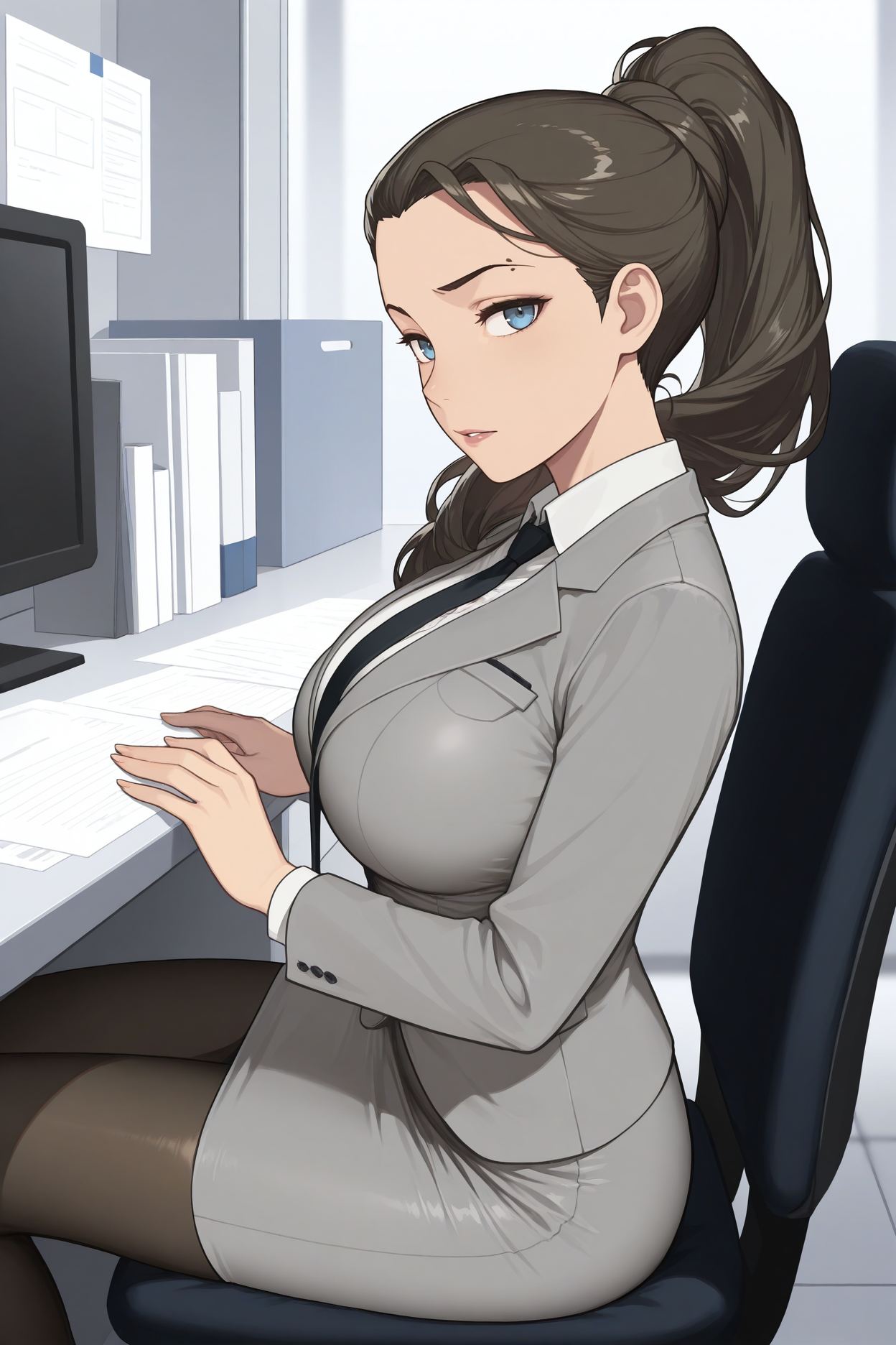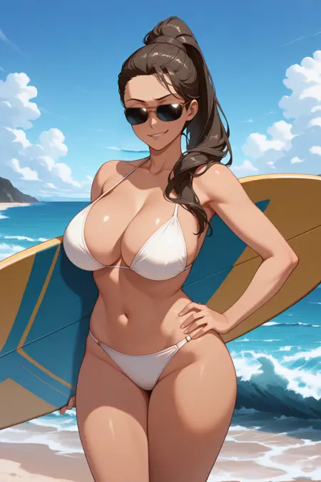 트리거 단어는 "fejh"이며, "검은 피부의 여성, 높은 토끼 꼬리, 진한 갈색 머리카락, 머리 뒤로 묶음, 긴 머리카락, 파란 눈, 성숙한 여성"이 필수입니다.