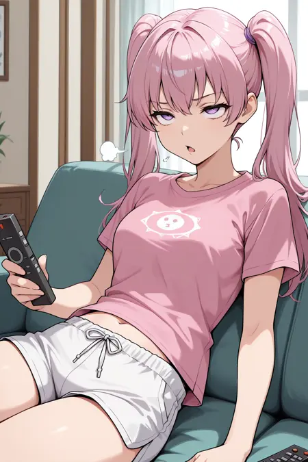 서머 세라를 원하면 "smrser, 핑크 헤어, 트윈테일, 보라색 눈, 중간 길이 머리, 금색 초커, 십자형 헤럴, 보라색 헤럴넥, 꽃 목걸이, 어깨 드러난 비키니, 프릴이 있는 비키니, 보라색 샬, 청록색 사롱, 투명한 사롱"을 추가하세요.