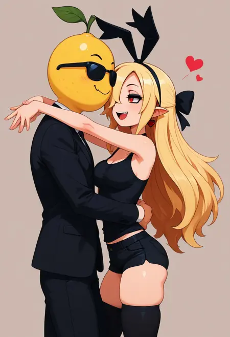 这个LoRA在生成两个人的图像时不太稳定,有时能用,但你可能需要额外添加标签,比如 object on head、lemon 或其他类似内容。
