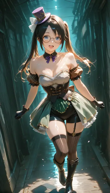 IMMitsuYui, 긴 머리, 가슴, 파란 눈, 검은 머리, 트윈테일, 중간 크기 가슴, 작은 가슴, 안경, 검은테 안경, 안경 쓴, 측면 머리카락, 갈라진 앞머리,