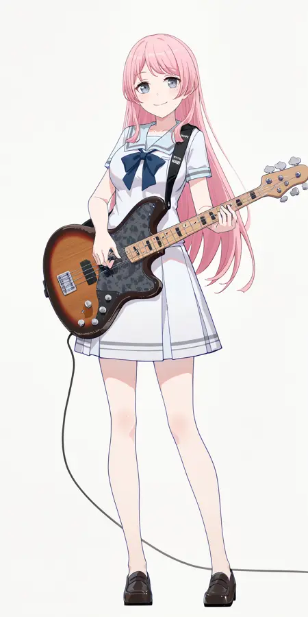 2、乐器部分,由于包含乐器的图像基本都来自动画截图,且多为Live场景,受灯光影响,在整理服装素材时未注意到删除这些图片,导致实际保留下来的带乐器图像数量极少,因此只能大致还原外形,颜色仍需多次尝试(乐奈和素世的相对稳定,爱音的颜色有时会变成她的发色)。