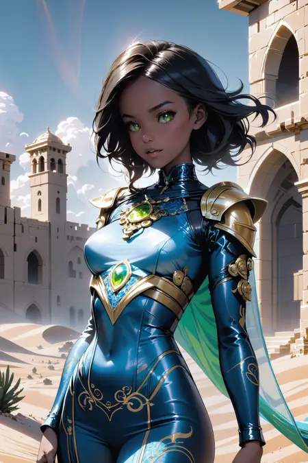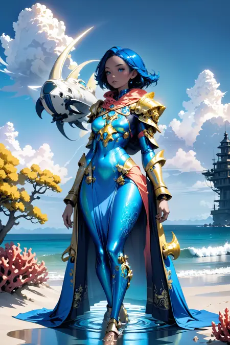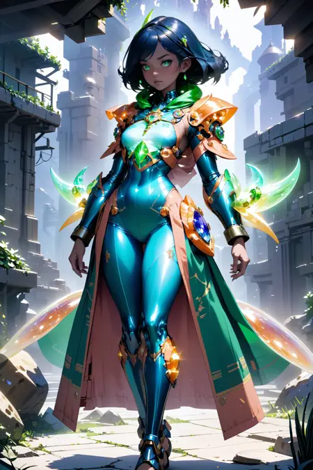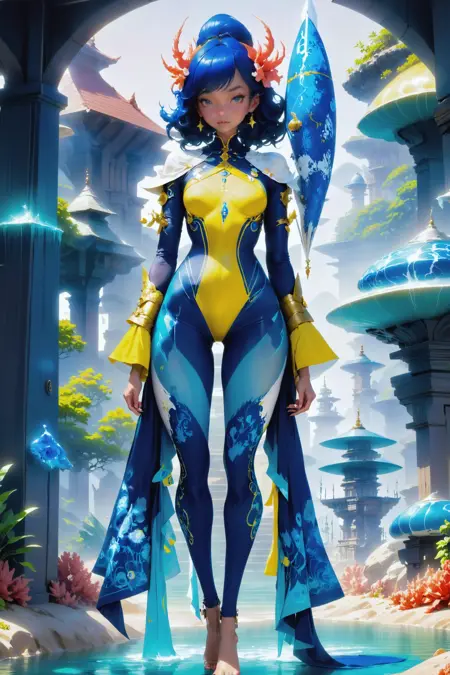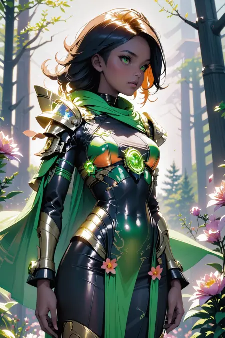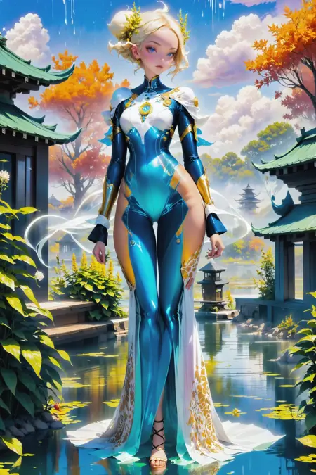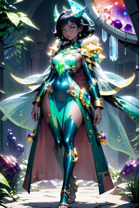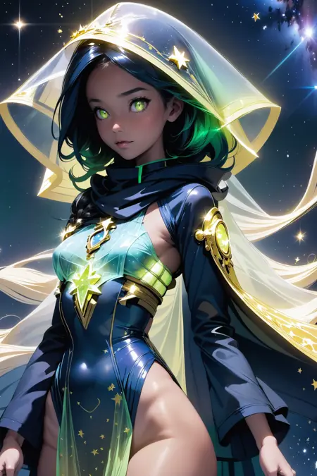 이 LoRA는 내 첫 번째 이미지 생성 대회에서 우승한 @Roscosmos를 기리기 위해 이름 지어졌습니다. 이는 화려한 색상과 많은 세부 사항이 있는 로브와 바디수트의 세련된 조합입니다.