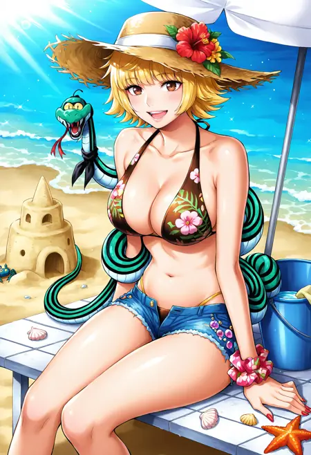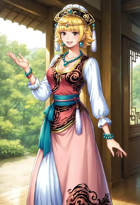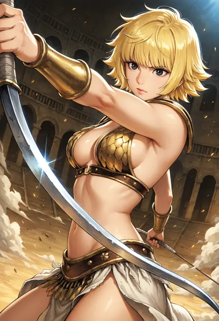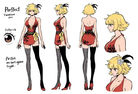 트래거 단어: 1girl, 금발, 단발, 중간 크기 가슴, 갈색 눈, 검은 눈