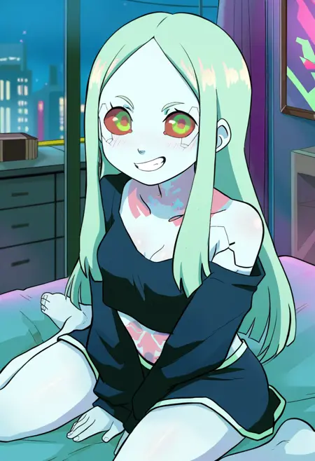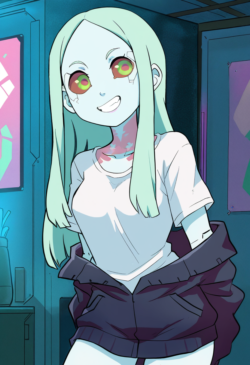 리베카 (애니메이션 사이버펑크 에지런너스 2022에서) - Gnsisir 스타일. HiRes Fix는 눈동자 및 눈 세부 사항을 개선하지만 필수는 아닙니다.