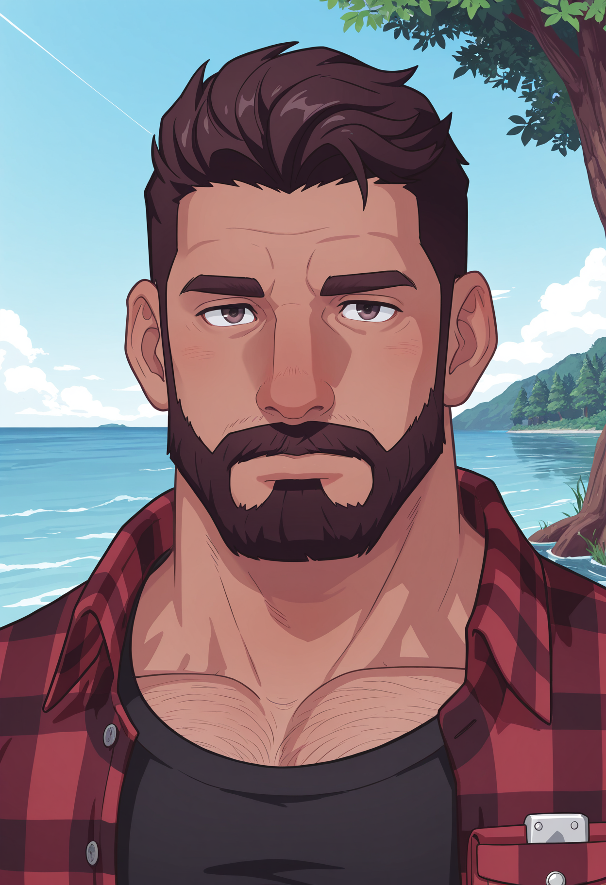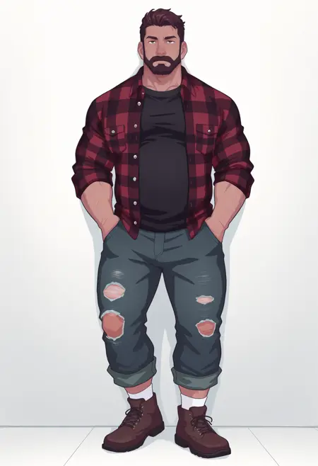 | Trained Words | uc20gene, mature male, dark skin, short hair, sideburns, beard, mustacheCopied! open shirt, red plaid shirt, brown boots, black t-shirt, torn jeans, pocket protector, pants rolled up, white socksCopied! chest hair, arm hair, leg hairCopied! |