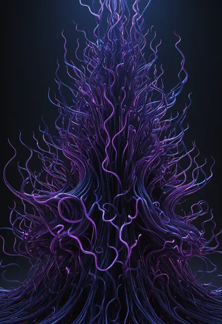 发光媒介: 电脑渲染 - 精细的哑光绘画 - 数字渲染 - 全息图 - 显微照片 - 超现实主义绘画 - 光线追踪图像 - 截图 - 行动绘画 - Affinity Photo - 抽象绘画 - 抽象雕塑 - 喷枪绘画 - 环境光遮蔽渲染 - 超精细绘画