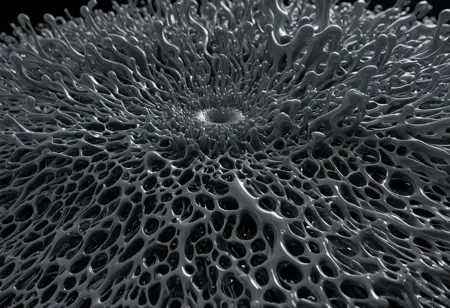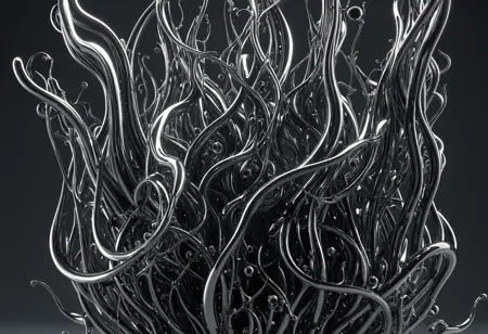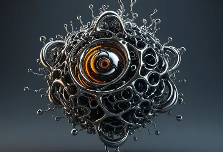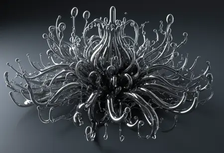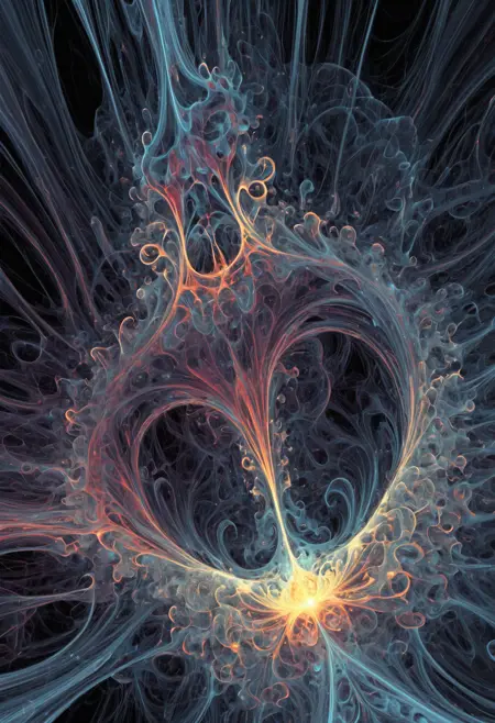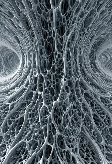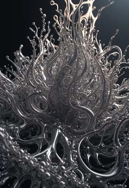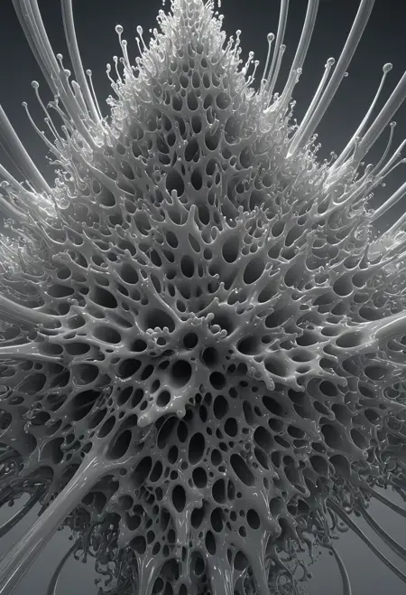 发光媒介: 电脑渲染 - 精细的哑光绘画 - 数字渲染 - 全息图 - 显微照片 - 超现实主义绘画 - 光线追踪图像 - 截图 - 行动绘画 - Affinity Photo - 抽象绘画 - 抽象雕塑 - 喷枪绘画 - 环境光遮蔽渲染 - 超精细绘画