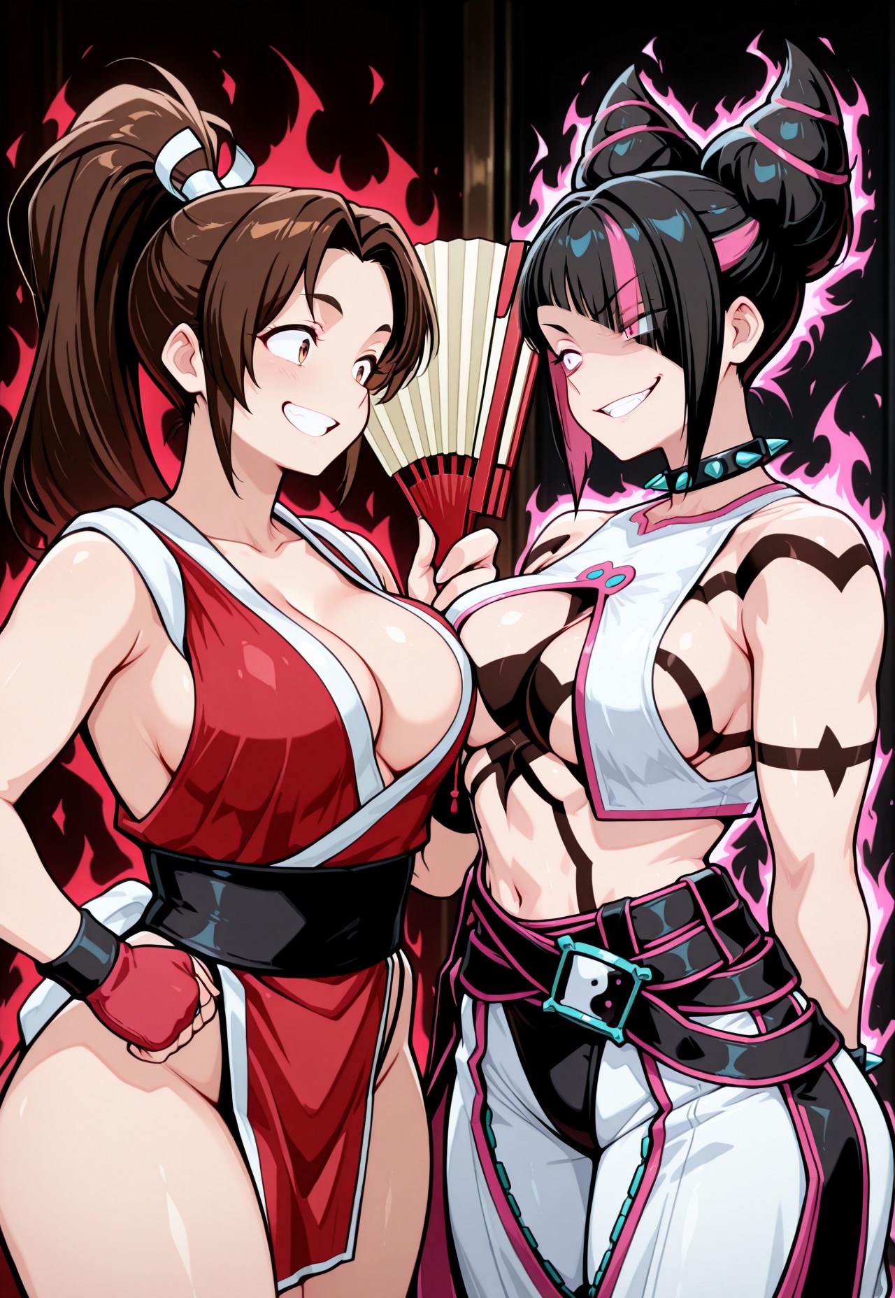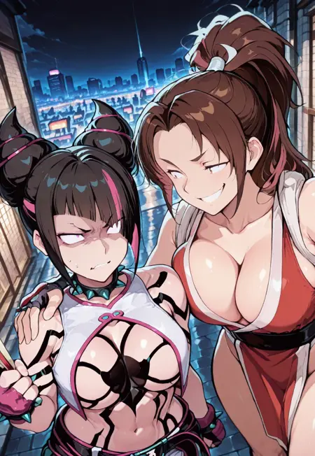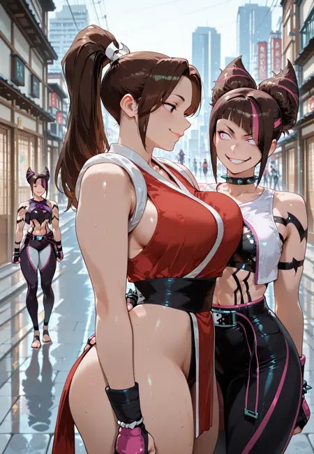 이 LoRA는 '패탈 퓨리/킹 오브 파이터스'의 마이 시라누이(舞 しらぬい) 와 '스트리트 파이터'의 줄리 한(ジュリ・ハン) 각각의 솔로 및 그룹 이미지를 높은 일관성으로 생성할 수 있습니다: