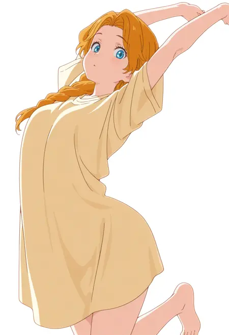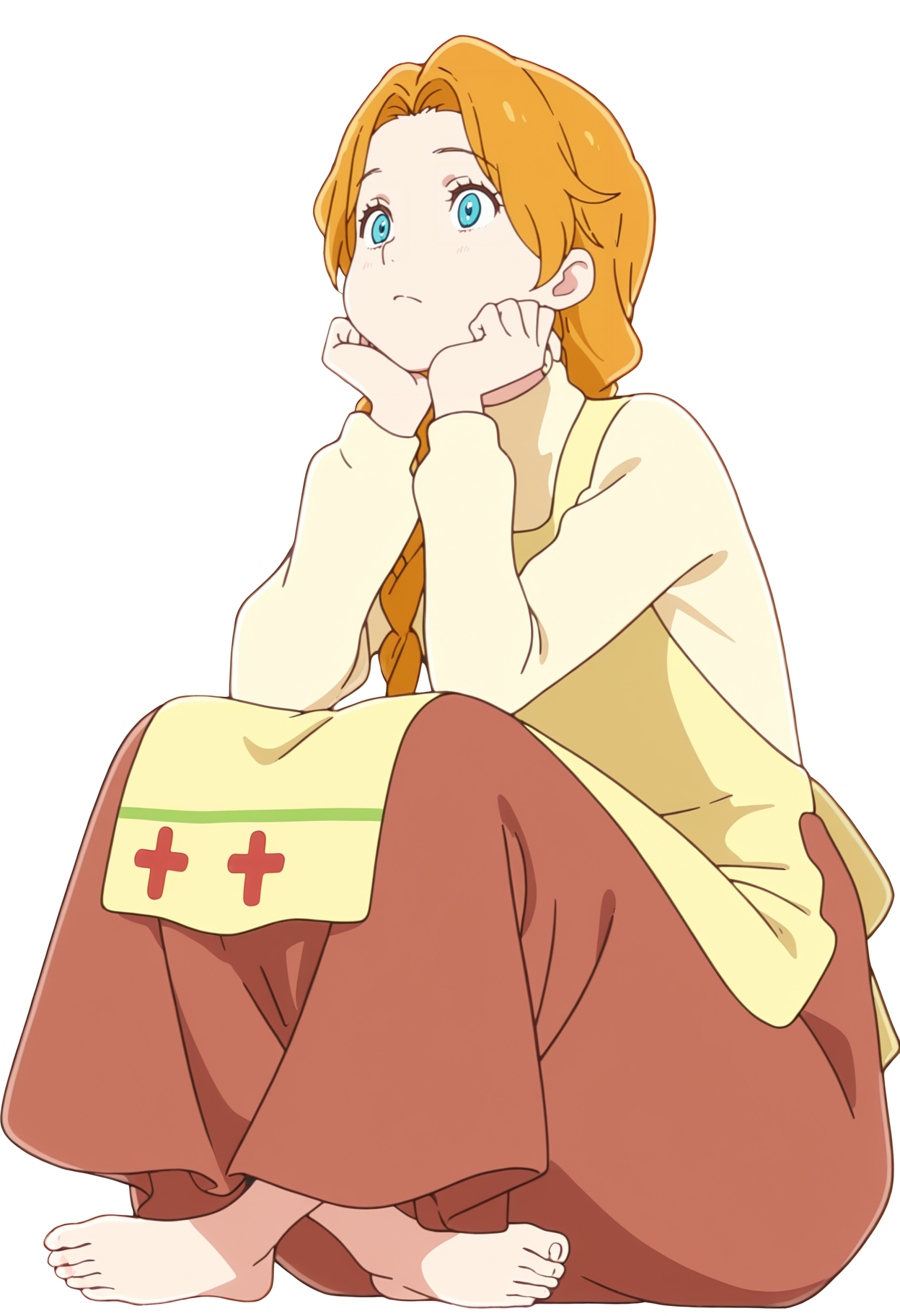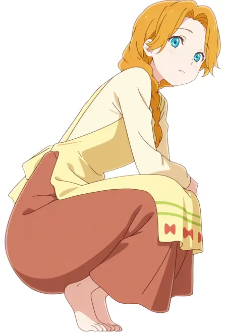 긴 머리, 커튼 헤어, 땋은 피그테일, 어깨에 걸친 머리, 단일 땋은 머리, 주황색 머리, 파란 눈, 애니메이션 스크린캡, 공식 아트,