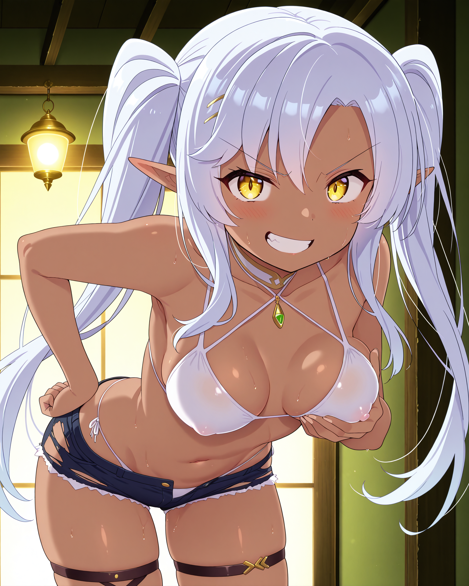 —— 她喧闹、骄傲,穿着比基尼仿佛那玩意儿欠她钱——来认识这位热爱战斗的海滩精灵,她的拳击力度比你的显卡降频还猛。无论她咧嘴露出尖利的獠牙,还是在挑衅时炫耀腹肌,她都散发着阳光晒透的肌肤与细绳泳装包裹下的纯粹混沌能量。这个 LoRA 专为极致肌肉、恶作剧与动感而打造——调高滑块,让这位粉丝服务的狂野女王如无规则的海滩派对般冲击你的渲染画面。