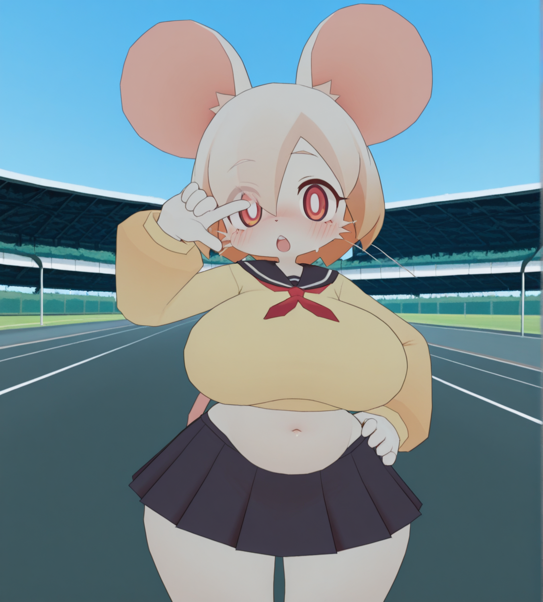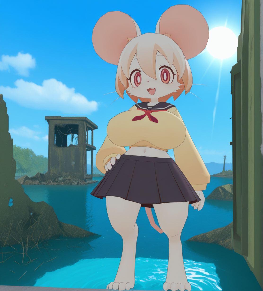 | 训练词汇 | アリルAi(シーレ/crepix), furry female,mouse girl, animal ears,mouse ears, whiskers, short hair,white hair, blonde hair, gradient hair, red eyes,snout, sailor shirt, yellow shirt, long sleeves,neckerchief, sailor collar,black sailor collar, black skirt, pleated skirt, mouse tail, barefoot,digitigrade,animal legs,animal feet,已复制! |