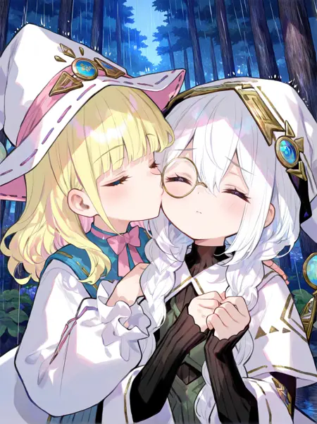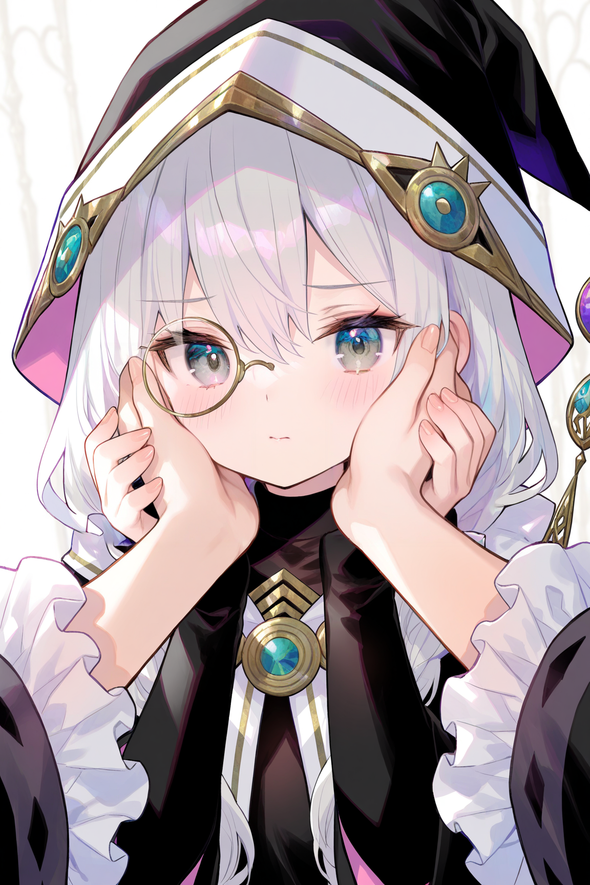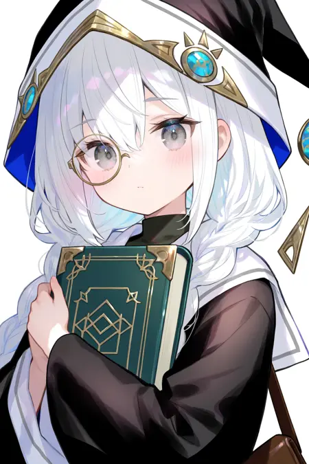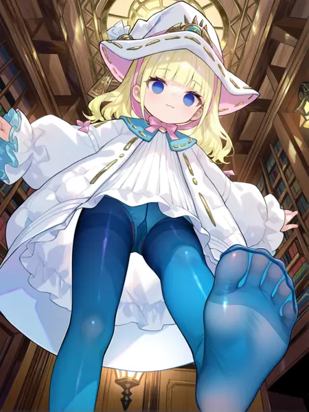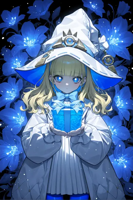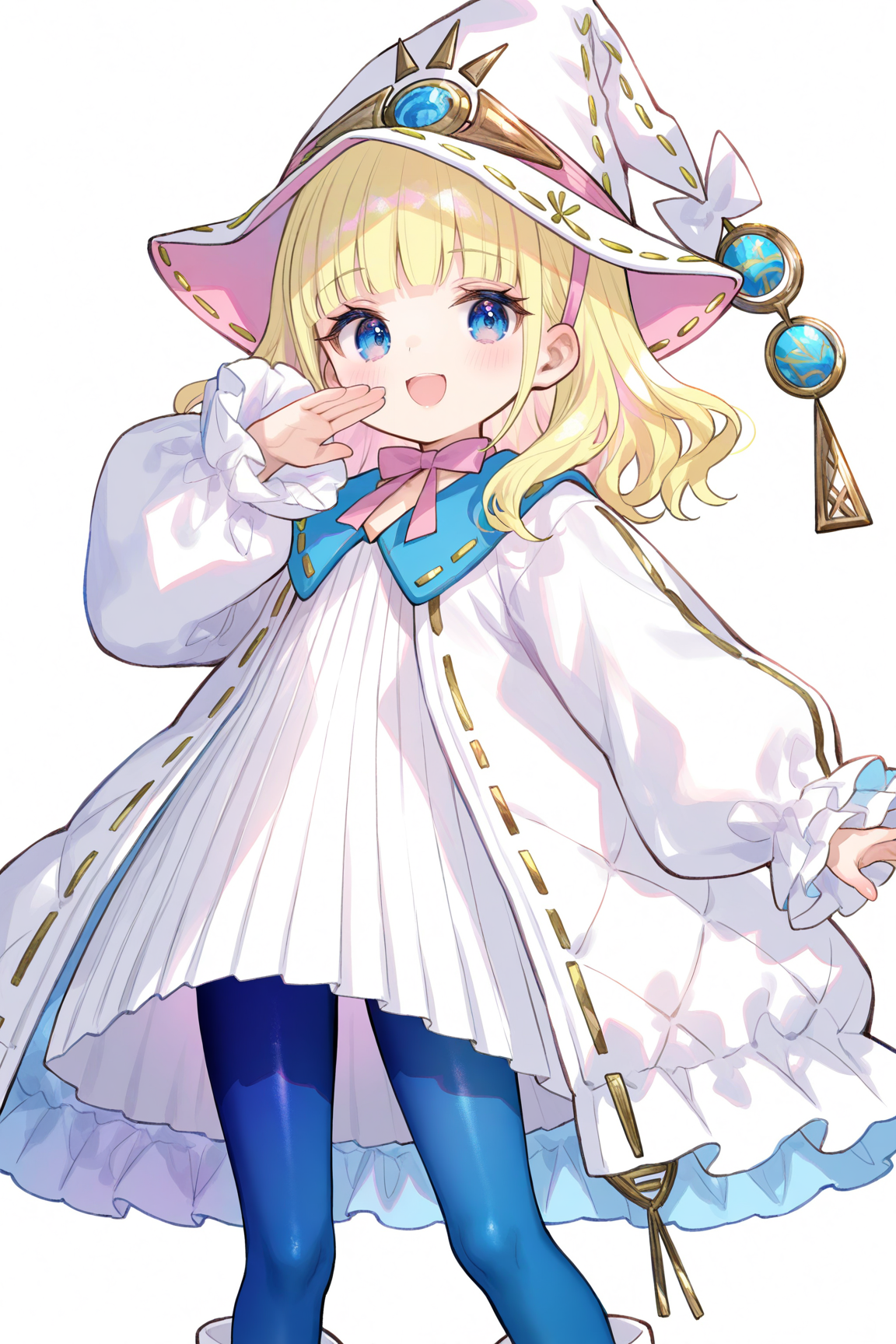 태그(옷-2): 흰 코트, 흰 드레스, 파란 팬티스타킹, 흰 마녀 모자, 흰 부츠