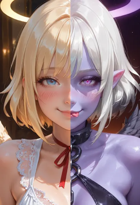 ⚡ 额外信息: 使用 Kohya 在 Illustrious v0.1 上训练,采用精细标签分离,以实现最大灵活性。每件服装和角色细节均独立标记,使您能够轻松修改发色、翅膀特征或服装部件等特定元素,而不会影响其他部分。包含纯天使与堕天使两种变体。