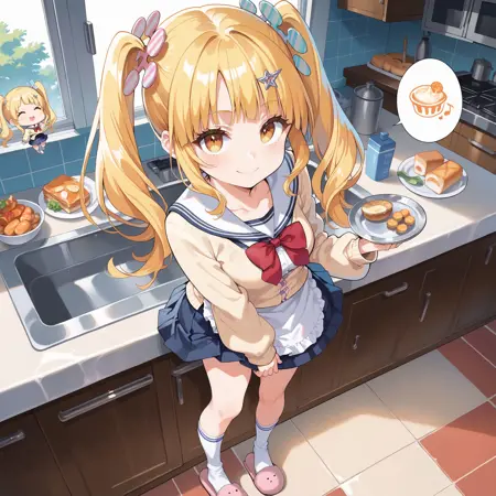 髪留めの再現度はあまり良くありません。SD1.5>pony>Illustrious
