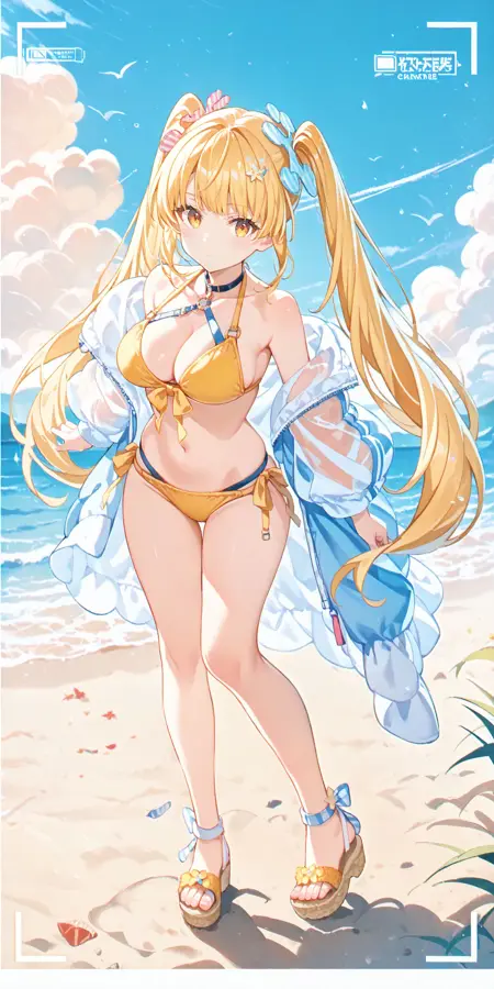 Magica2019: magica2019、翼型の髪飾り、髪飾り、髪留め、チョーカー、黄色いドレス、オレンジのリボン、宝石、短袖、白い手袋、フリル、レイヤードスカート、膝上ブーツ、リボン、ハイヒール、オレンジの靴