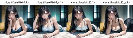 異なるモデルを統合する際の次元が異なるため、32と64のバージョンが存在します。バージョンによってサイズが異なり、効果にも違いが生じます。また、SuperMergeプラグインの「same to strength」オプションを有効にしたかどうかによって、さらに2つのバージョンに分岐します。したがって、合計4つのバージョンがあります。