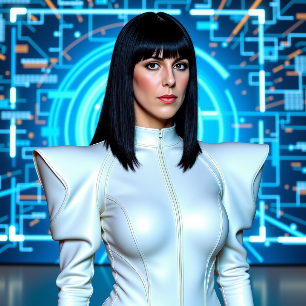 Flux version of Molly, created to be a woman with long, straight hair who wears it down her back. (I think the autotagging caught this however). Not based on a real person or character.