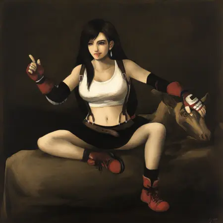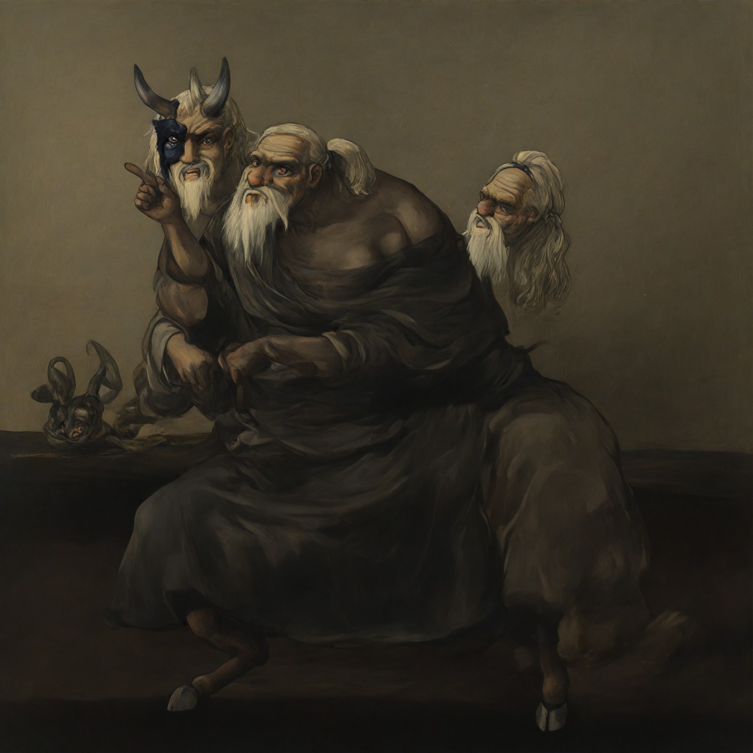 Trigger words: Black Painting, Goya Style, fine art parody, traditional media,