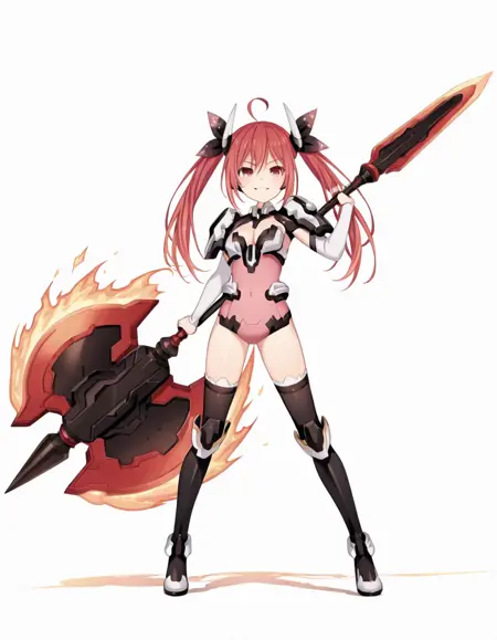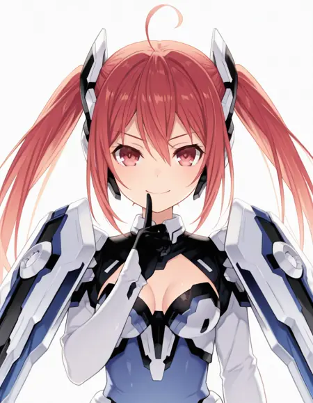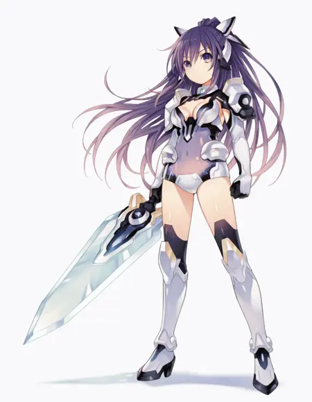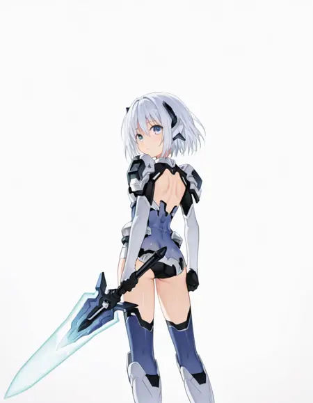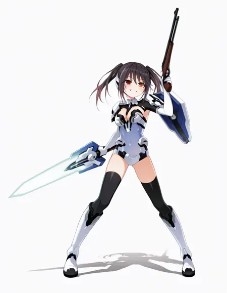 MurakumoCR, mrkm_faulds, mrkm_shoulder_armor, mrkm_shoulder_shield, mrkm_headgear, mrkm_battlesuit, mrkm_leotard, mrkm_armored_knee_boots, mrkm_thighhighs, long sleeves, gloves