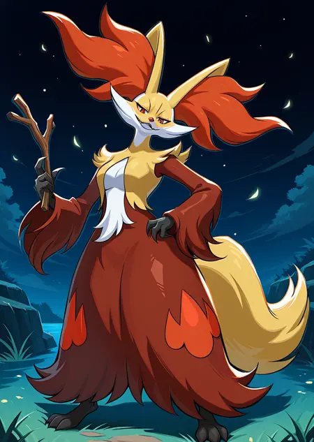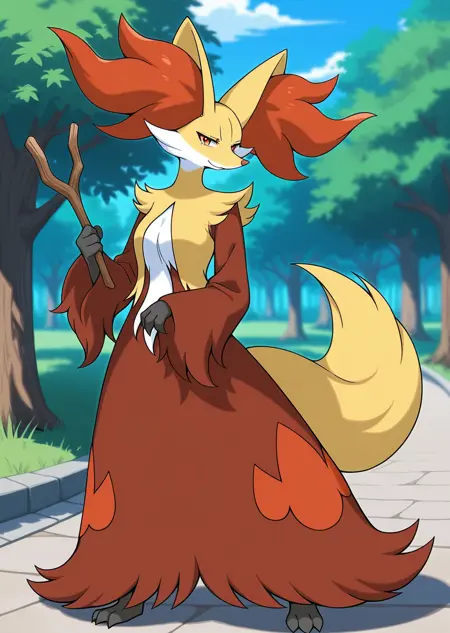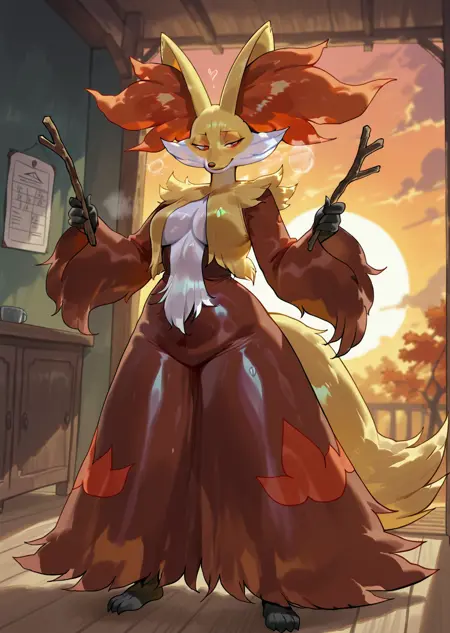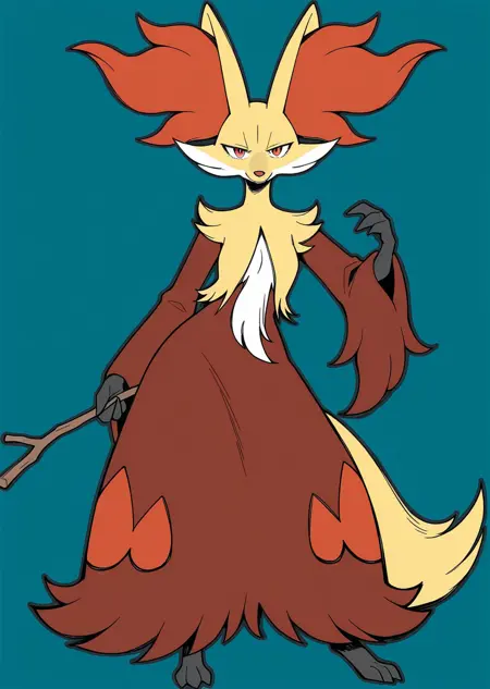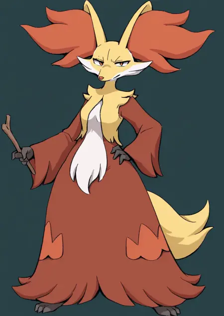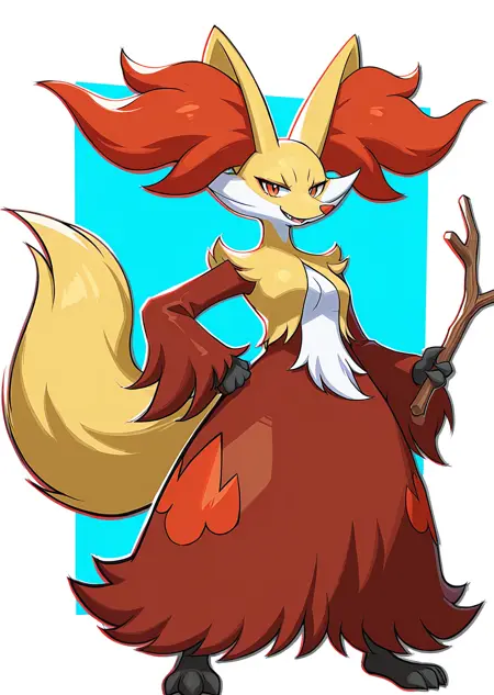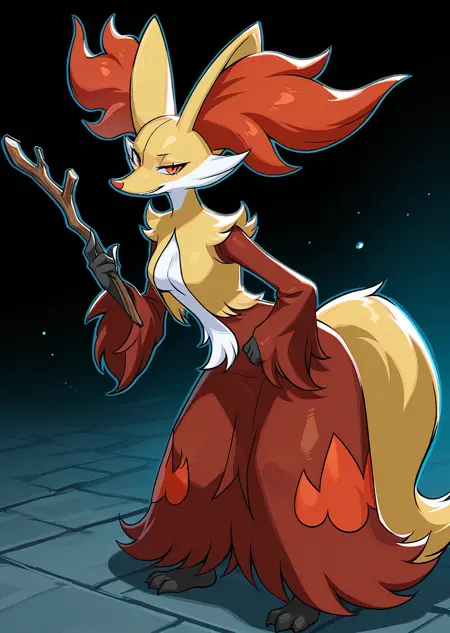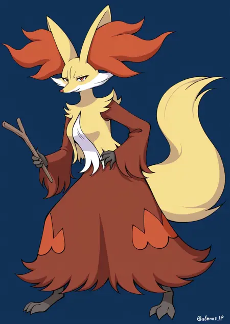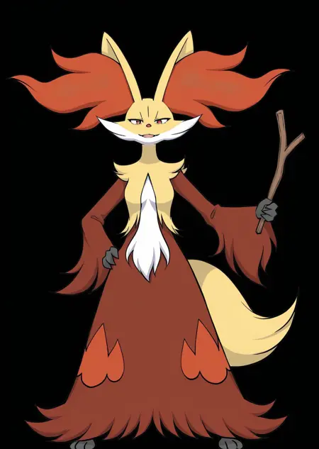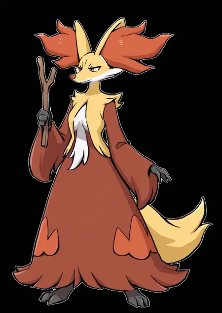 Prompts: delphox, wooden stick,