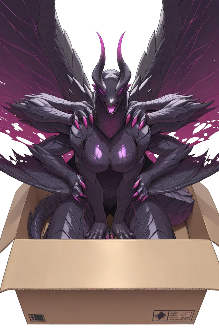🔹 核心特征Gore Magala, dragon, eyeless, winged arms, horns, monster, purple scales, wings, dragon tail, claws, spiked limbs, dark aura