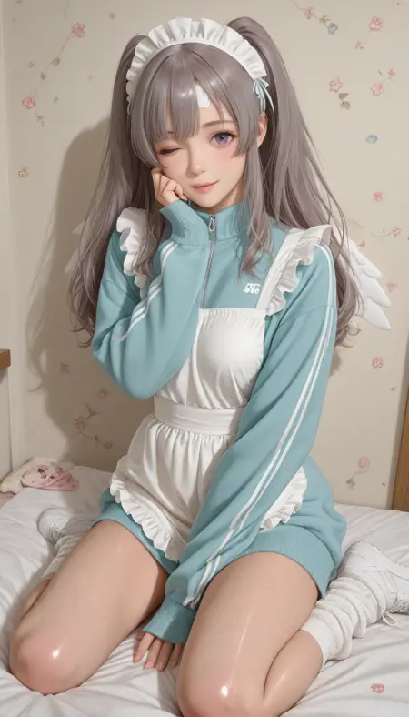 IMYokoKiri、長い髪、胸、ツインテール、中程度の胸、紫の目、灰色の髪、サイドロックス、絆創膏、顔に絆創膏、額に絆創膏、