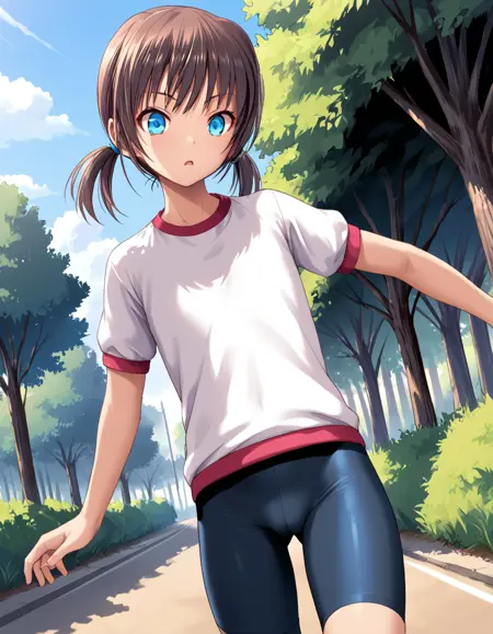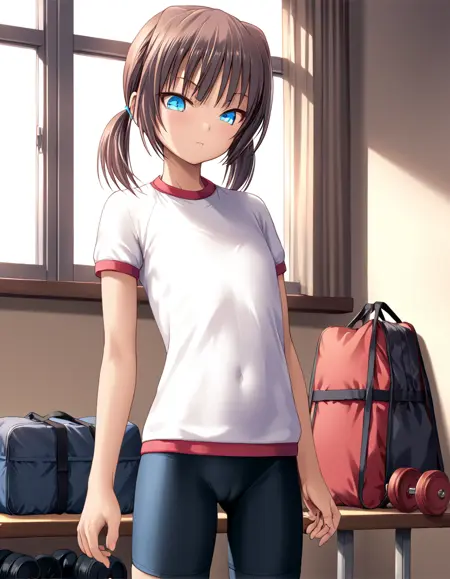 flat chest, bike shorts, gym uniform