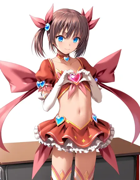 裙子,过膝袜,手套,白色背景,蝴蝶结,丝带,肚脐,项圈,肘部手套,露脐,魔法少女