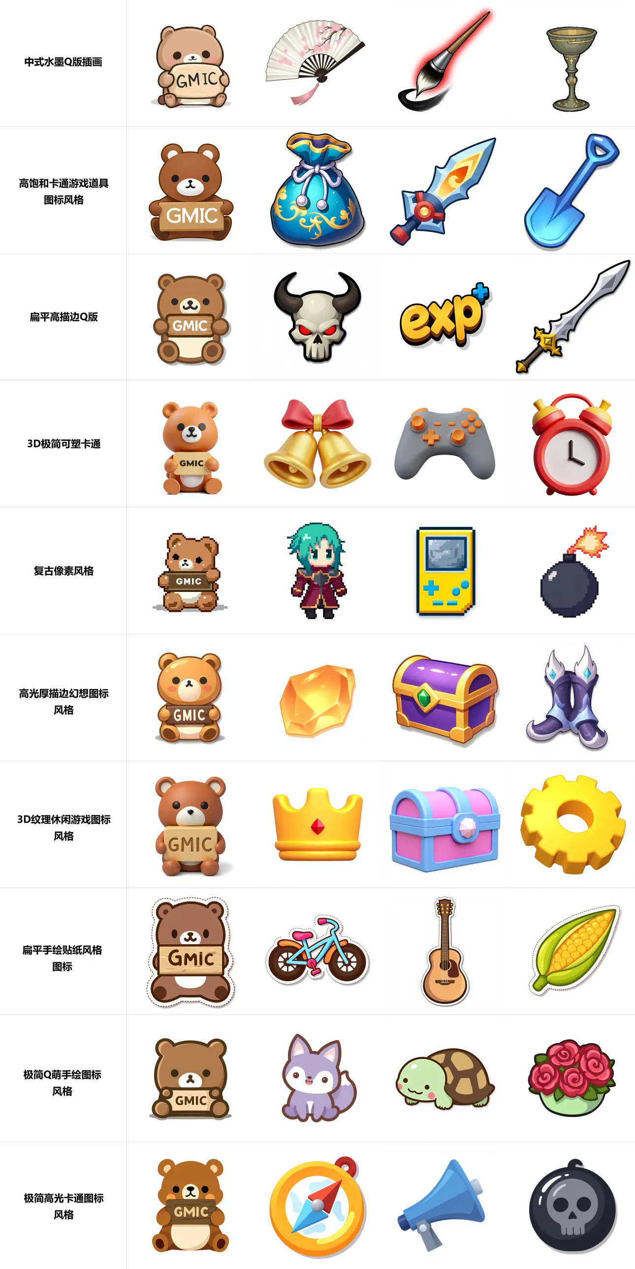 此模型暂时开放以下十种图标风格,后续会继续更新