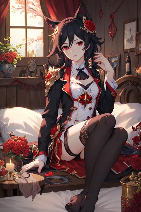 换装时,除将原形象的触发词放入“negative prompt”外,还可尝试降低“Fu Hua(BV),”的权重,但不宜低于“(Fu Hua(BV):0.8)”。