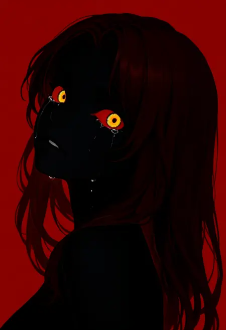 以下のタグのいずれかを使用することをお勧めします:赤い背景、赤い目、黄色い sclera、輝く目、口なし、ホラー(テーマ)、白い目、無表情な目