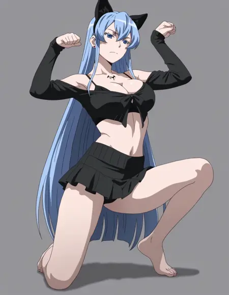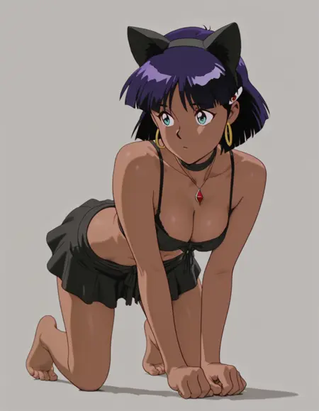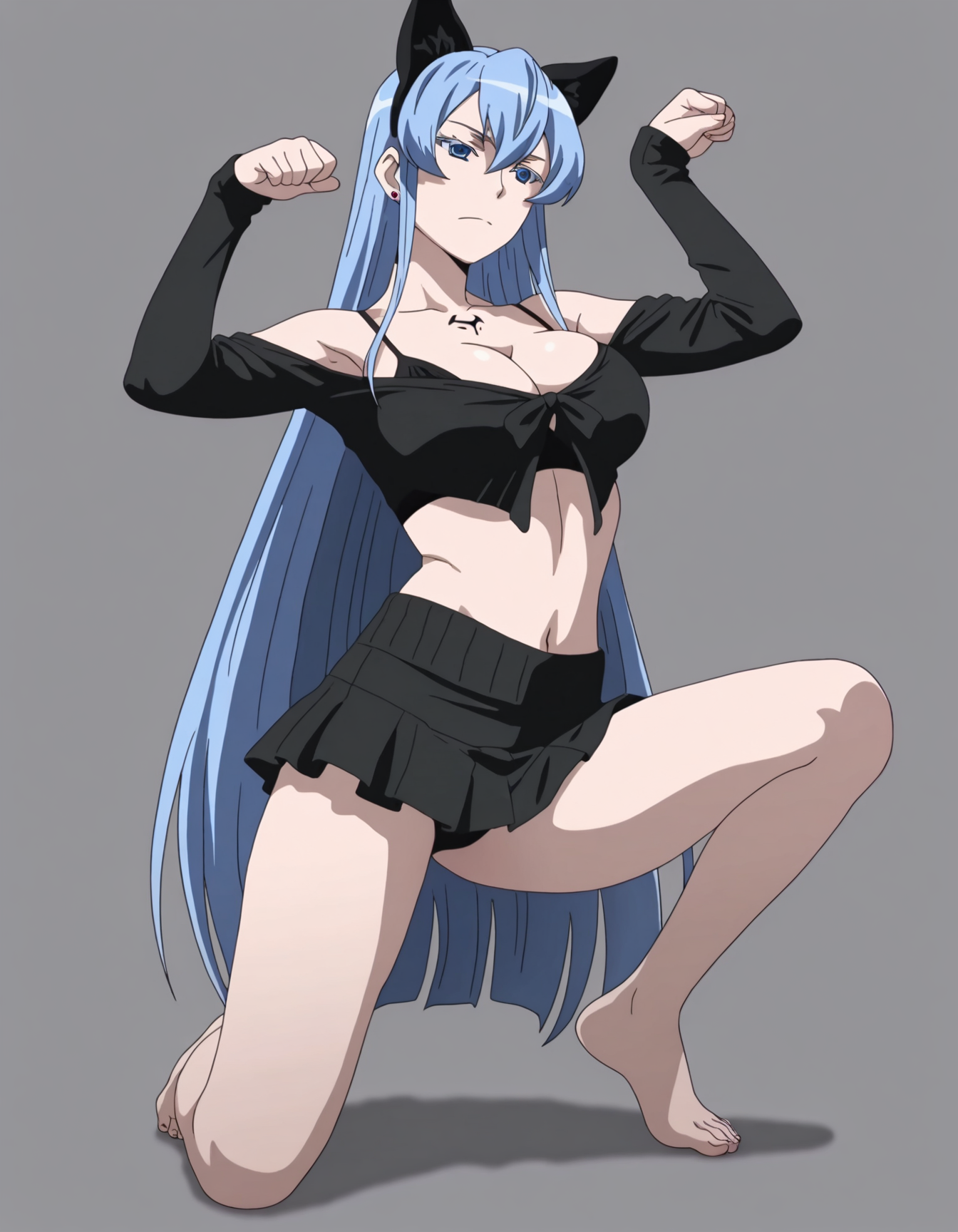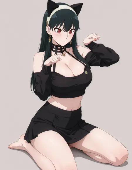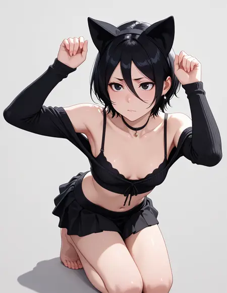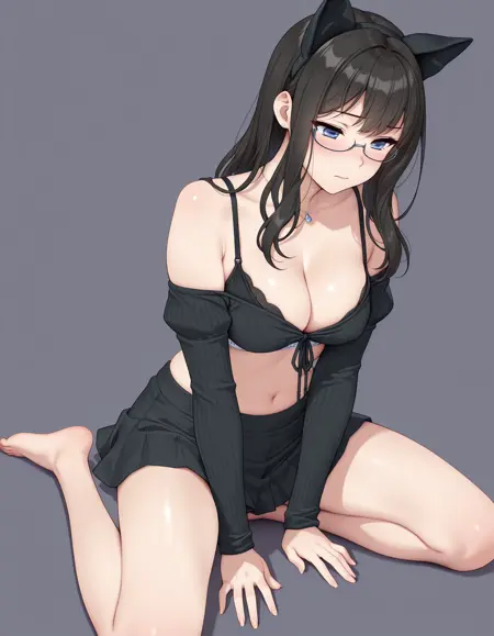 mai_bj_clothing_5,fake animal ears,black_sweater,midriff,black_bra,black_skirt,jewelry,skirt,bare_shoulders, collarbone