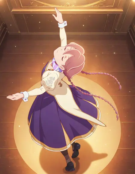 <lora:yachiyo-apocalypse_hotel_s1-v2-ixl-anime-soralz:1>, yachiyo (apocalypse hotel), long hair, brown hair, twin braids, hair between eyes, orange eyes