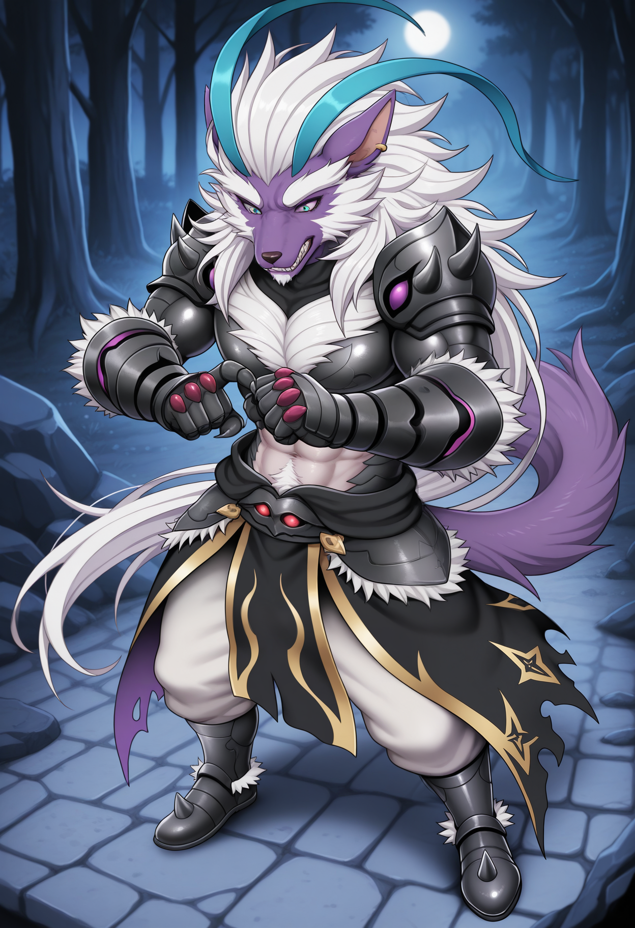 トリガーワード: l0k1d0、フューリー、多色の毛並み、紫の毛並み、色のついた巩膜、青い目、