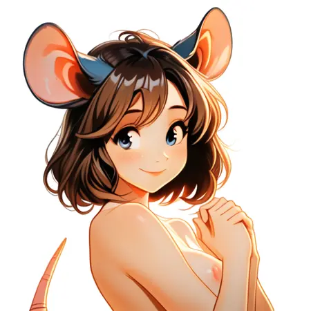 LoRA用于生成短棕发鼠女,她们有鼠耳和鼠尾,适用于NSFW或SFW。