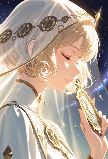 为结合 Illustrious 的金属美学与 Pony 的可爱风格,可添加: