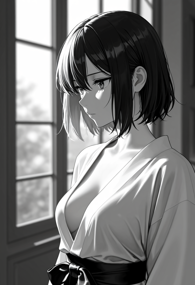 full body, standing, facing front, natural pose, dynamic silhouette, backlight, side light, symmetrical pose, 3/4 view, centered subject
