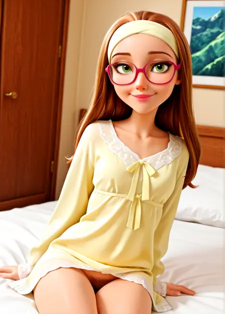 honeyxd, 1girl, solo, glasses, long hair, brown hair, lips, hairband, green eyes,