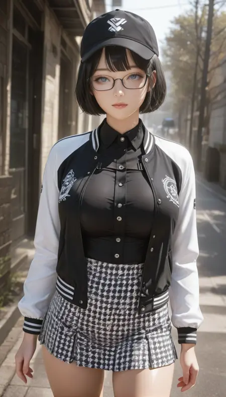 NIKKEMana, 가슴, 단발, 파란 눈, 큰 가슴, 검은 머리, 안경, 두더지, 눈 밑 두더지, 볼컷, 반프레임 안경, 검은 프레임 안경, 하프프레임 안경, 회색 눈,